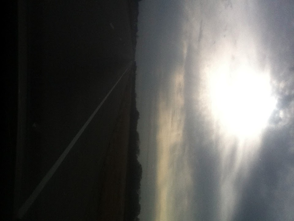 And then I went driving.  Sunday afternoon, I had a long road in front of me.  Both the miles and the difficult destination were looming in front of me.  My passengers fell asleep, it was quiet, and still my brain would not stop.  Suddenly, I looked out at the horizon (which is a strage thing to say considering I was driving straight into it).  It was gorgeous.  The sun beams literally bounced from cloud to cloud, reflecting from the center sphere of the sun and then darting down and out.  The clouds nearly acted like prisms. It was gorgeous, different than anything I’ve seen before. The power was from the sun, but the beauty came from the clouds reflecting the light..