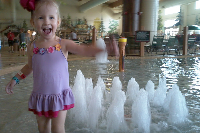 Lou, as the only princess in the whole waterpark who insisted on wearing a bow, was perfectly happy in 1 foot or less of water at.all.times.  Occasionally, she would work up the nerve to reach her hand out and touch one of the fountains (that came up to her belly), but quite preferred to play her imaginary games of princess and frog in shallow water.  She loved it, though, and could have cared less if anyone at all played with her and really preferred that no one splash in her presence.  Oh, what a princess.