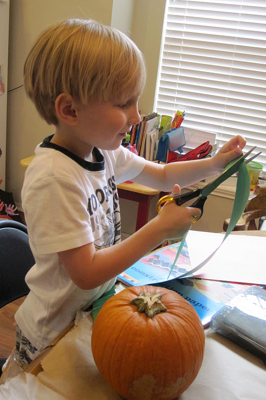 This is our second year to decorate pumpkins WITHOUT carving them.  This way they can do it themselves