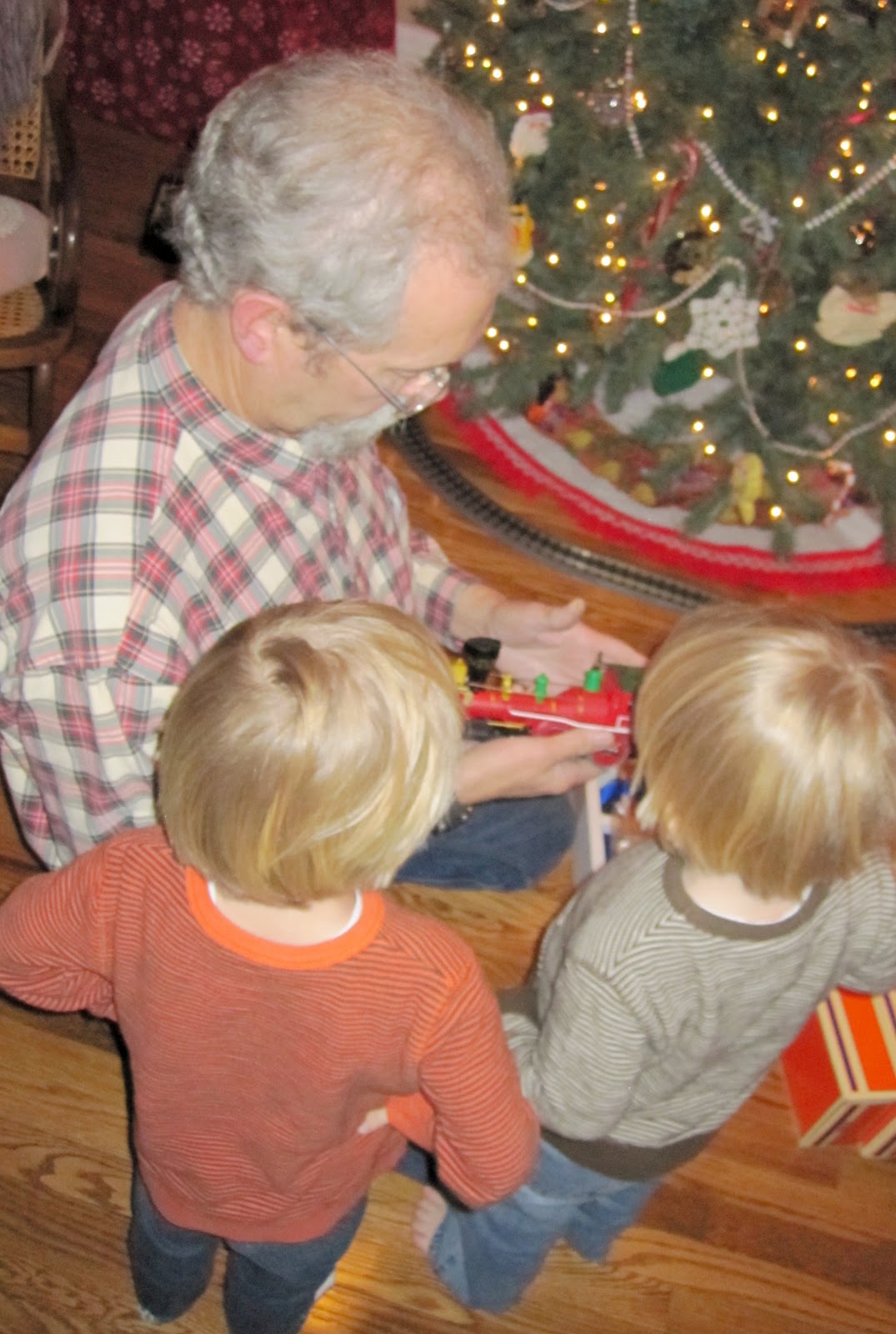 KJ figured out that when people chimed their glasses, Uncle M and Aunt S would kiss. He was all-over-this. In the picture below, he climbed up into M’s lap to kick-off the kissin’ one more time!