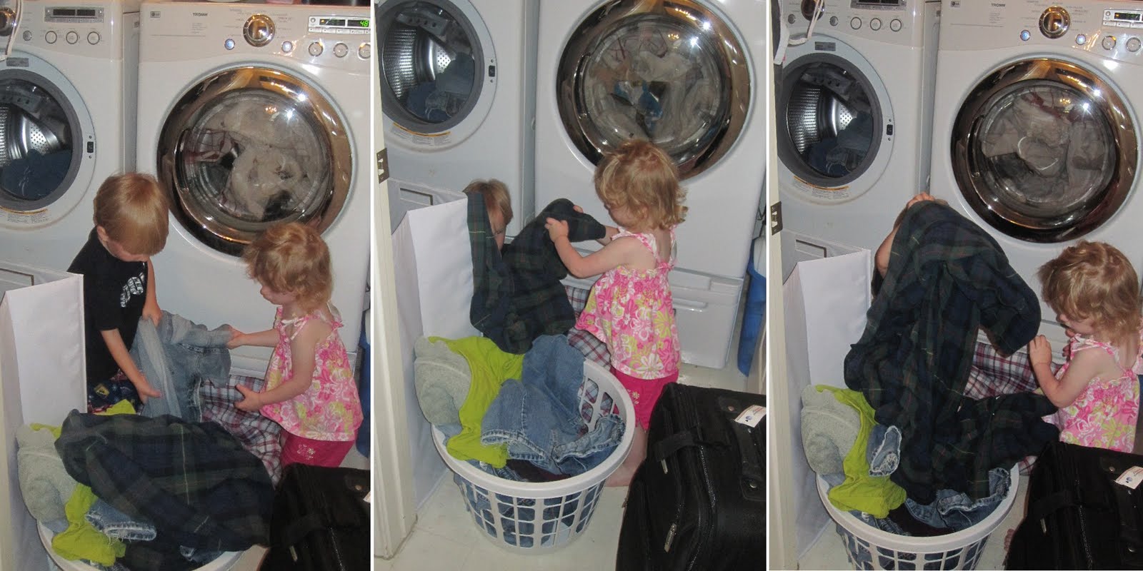 I want to remember what it looks like to find random jobs around the house to a) get toddlers involved and b) keep those toddlers occupied.  Jobs like helping load the washing machine via a 2-year-old to 3-year-old handoff.