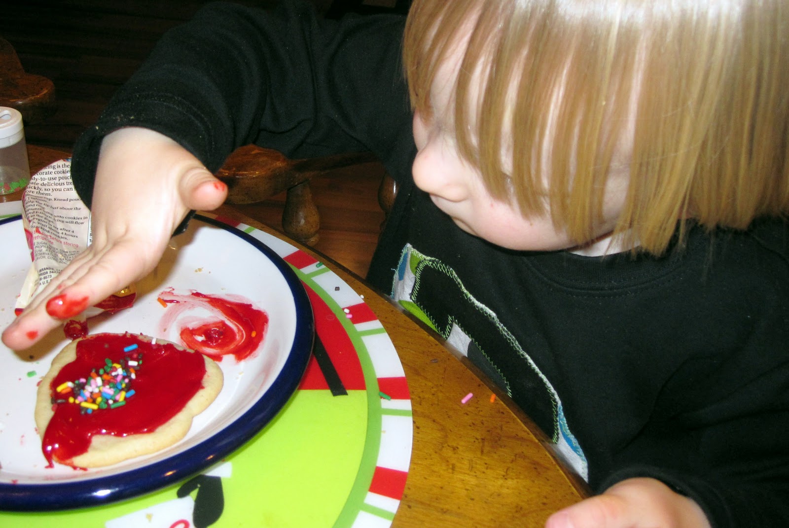 We had Sonic for lunch and Daddy made homemade pizza for dinner and the kids and I made, iced and decorated the Christmas cookies that never got made during the holidays (told ya so- junk food GALORE).