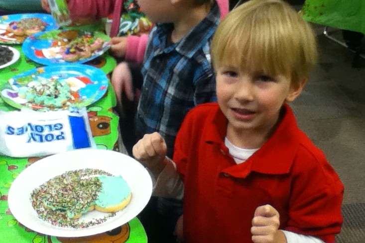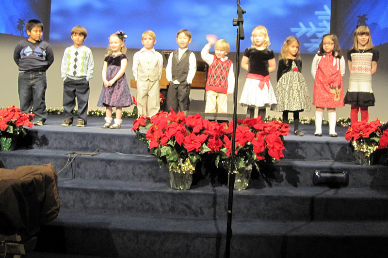 KJ’s class sang several songs and also took turns telling parts of the Christmas story.  KJ got his line in November to start practicing.  We worked on it every night at dinner (he took his job very seriously), which might have been a bit overkill because at the end even Lou could recite  “Mary and Joseph’s journey ended in a stable filled with hay.  It was there that Mary gave birth to our King on this day”.  KJ definitely knew his line when time came…in fact he knew exactly what order all 10 of his friends would speak and could recite nearly ALL of their lines as well.