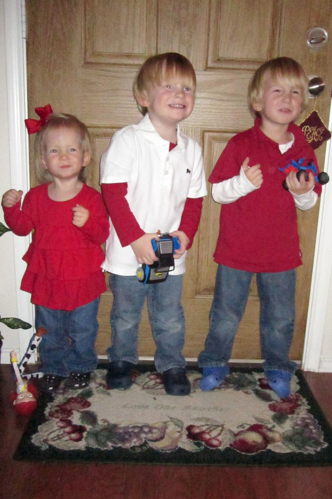 Real life doesn’t stop for Christmas. We still had tantrums, accidents, bickering, a sick middle boy and lots of messes to clean-up. But I loved every minute of the holidays this year. We really did have an amazing time with our families and making memories with our children. Special thanks to our Moms who go WAY out of their way to make it so special and so much easier on us in our current stage of being outnumbered by toddlers. You have no idea how much it means to us…then again, maybe you do.